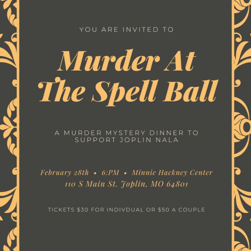 Joplin NALA Read is hosting an interactive Murder Mystery Dinner, “Murder at the Spell Ball,” inviting guests to step into a fun evening of clues, characters, and community impact. Inspired by NALA Read’s long-running Spell Ball tradition, the event assigns attendees playful roles—like competitors, donors, and celebrity philanthropists—as they work together to solve the mystery (no acting experience required). The evening includes a full meal and an engaging, all-ages experience, with tickets priced at $30 per person or $50 per couple. Proceeds support NALA Adult Literacy’s free tutoring, classes, and resources for adults building reading and writing skills in the Joplin community.
