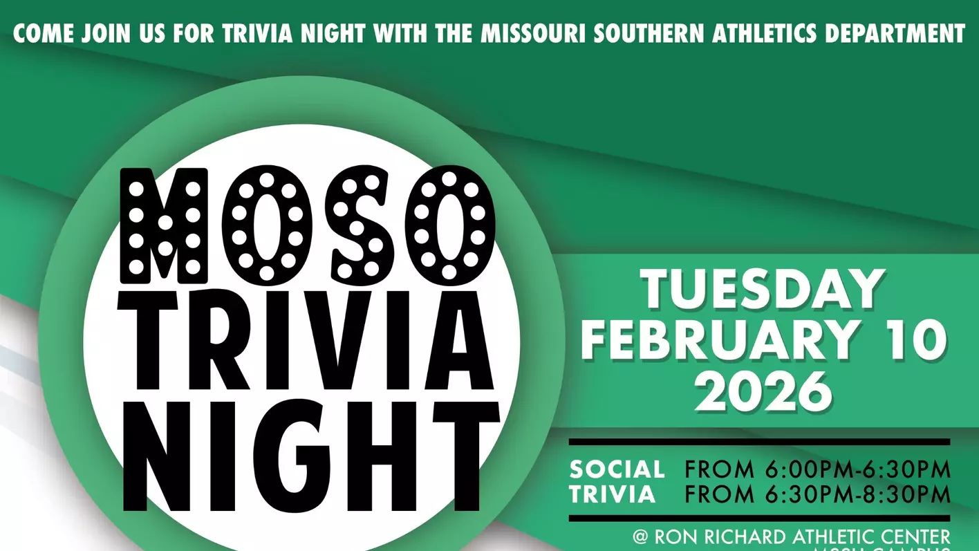 Missouri Southern Athletics is hosting MOSO Trivia Night on Tuesday, February 10, inviting faculty, staff, fans, Lionbackers, and community members (21+) to test their knowledge while supporting Lion Athletics. The evening kicks off with a social at 6:00 PM featuring appetizers and beverages, followed by trivia at 6:30 PM with eight rounds covering everything from MSSU history and sports to pop culture, movies, music, and science. Teams of up to eight can compete for $250 per team, which includes entry, appetizers, and three drink tickets per person, with drinks donated by Missouri Eagle. Creative team names and themed outfits are encouraged, with a prize awarded for the most creative theme. Registration closes tonight, January 30.
