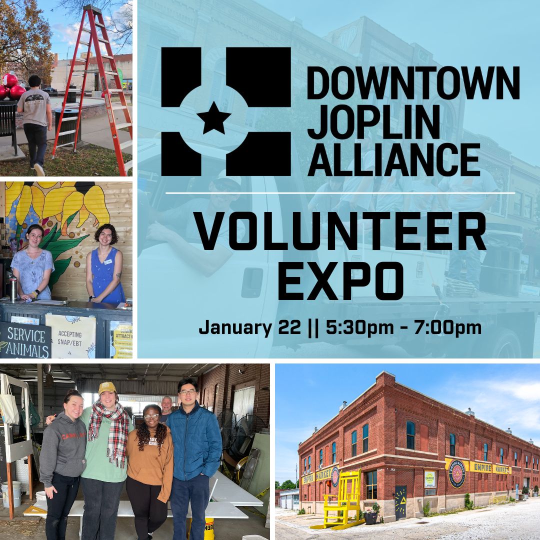 Downtown Joplin Alliance will host its annual Volunteer Expo on Thursday, January 22, from 5:30–7:00 PM at the Empire Market (931 E 4th St.). The event is open to both current volunteers and anyone interested in getting involved with downtown Joplin but unsure where to start. Snacks and drinks will be provided, and the dress code is casual.